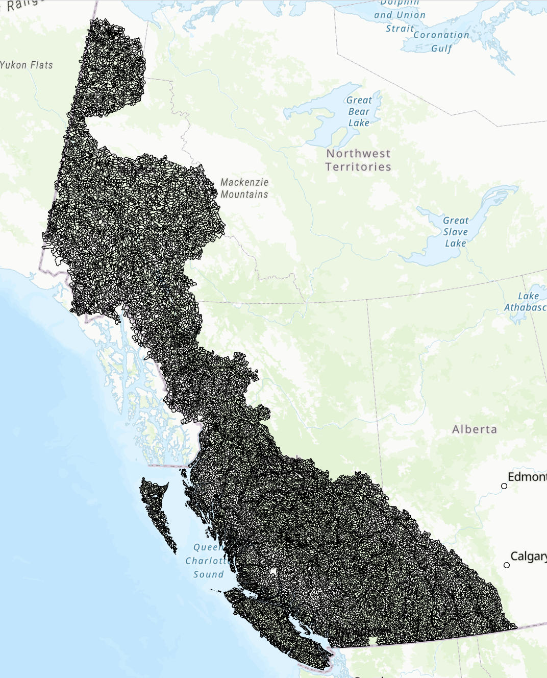 All Assessment Watersheds in the salmon-bearing regions of BC and the Yukon (n = 20877). Assessment watersheds are the reporting unit for the habitat assessments.