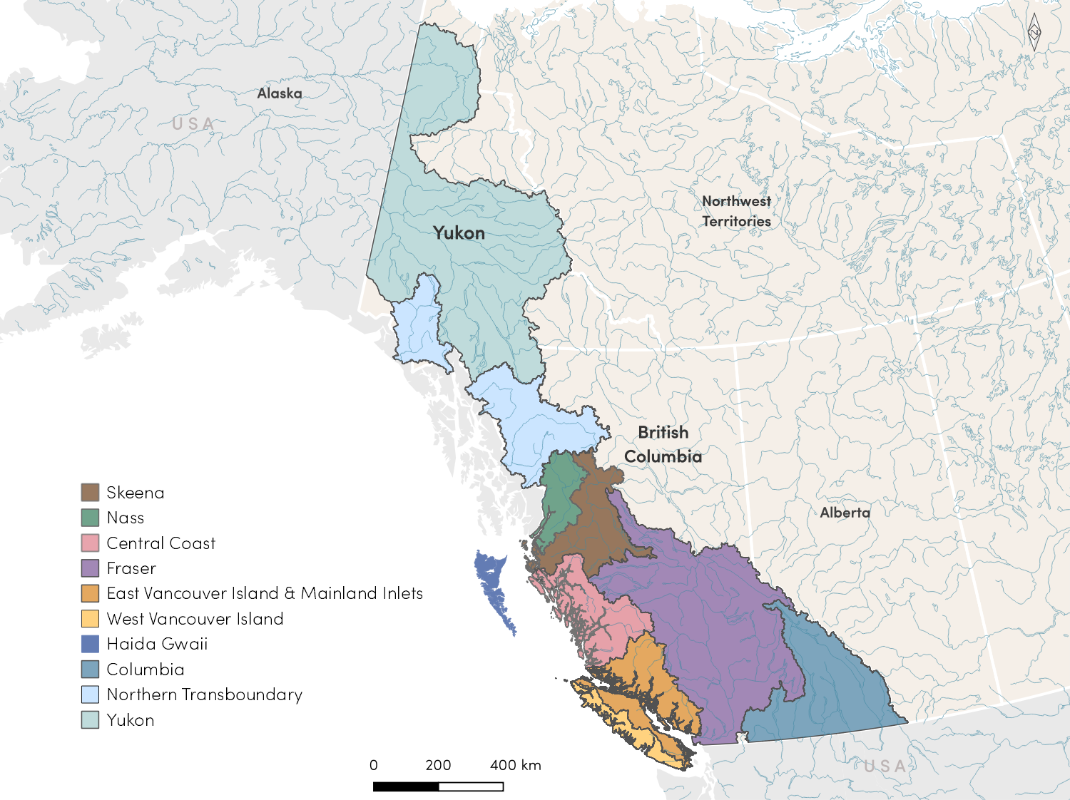 Each Region within the Pacific Salmon Explorer has specific attributes related to management regimes, data collection, documentation protocols, and most importantly, salmon populations and habitats (Figure 5.1). Here, we document Region-specific data sources, methodological considerations, and social processes used in each of the initial biological status, habitat pressure assessments, and any other unique information for each region currently within the Pacific Salmon Explorer.
